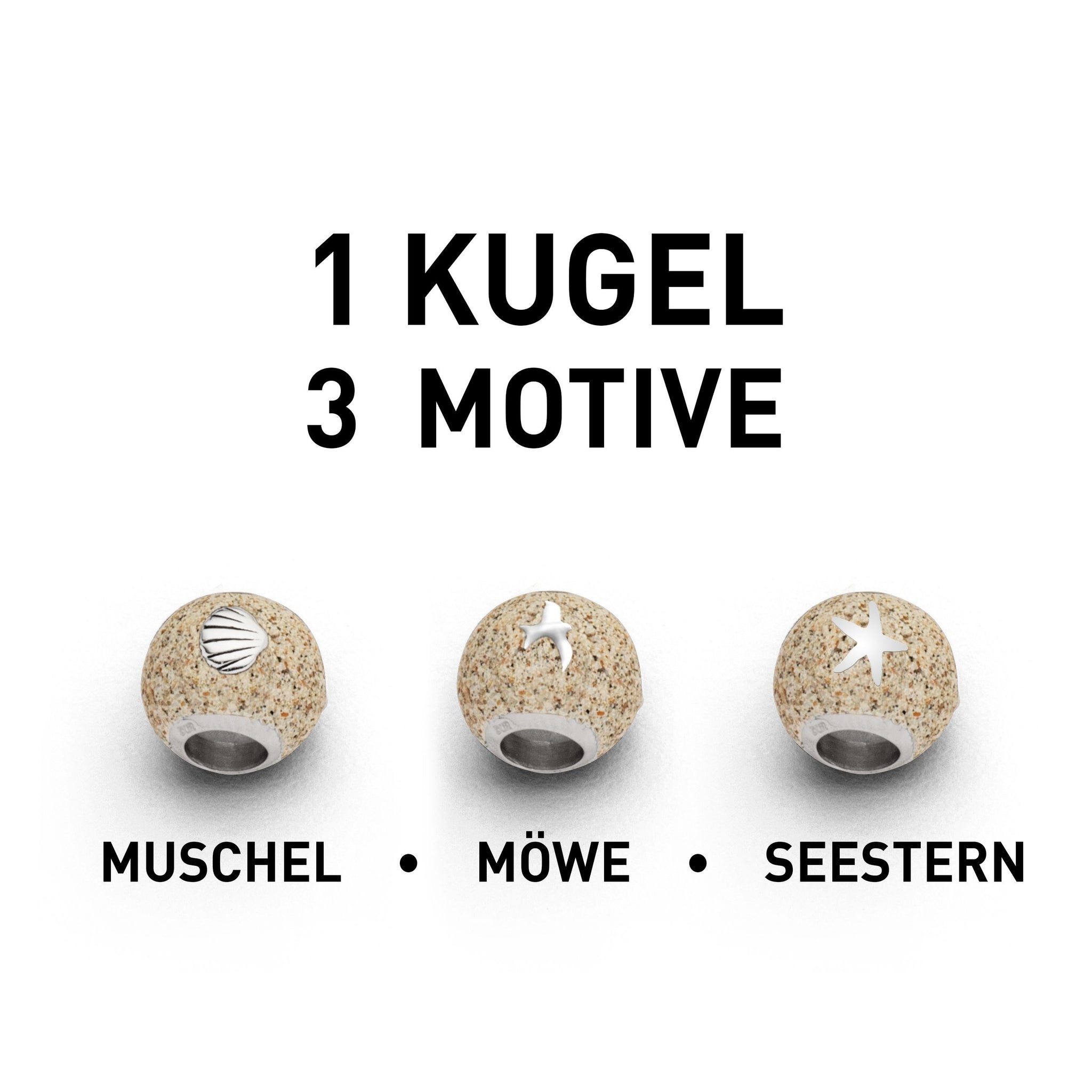 Diese Strandsandkugel verzaubert mit klarem, glänzenden Design und maritimen Motiven (Muschel, Seestern, Möwe), die das Gefühl von Urlaub vermitteln.