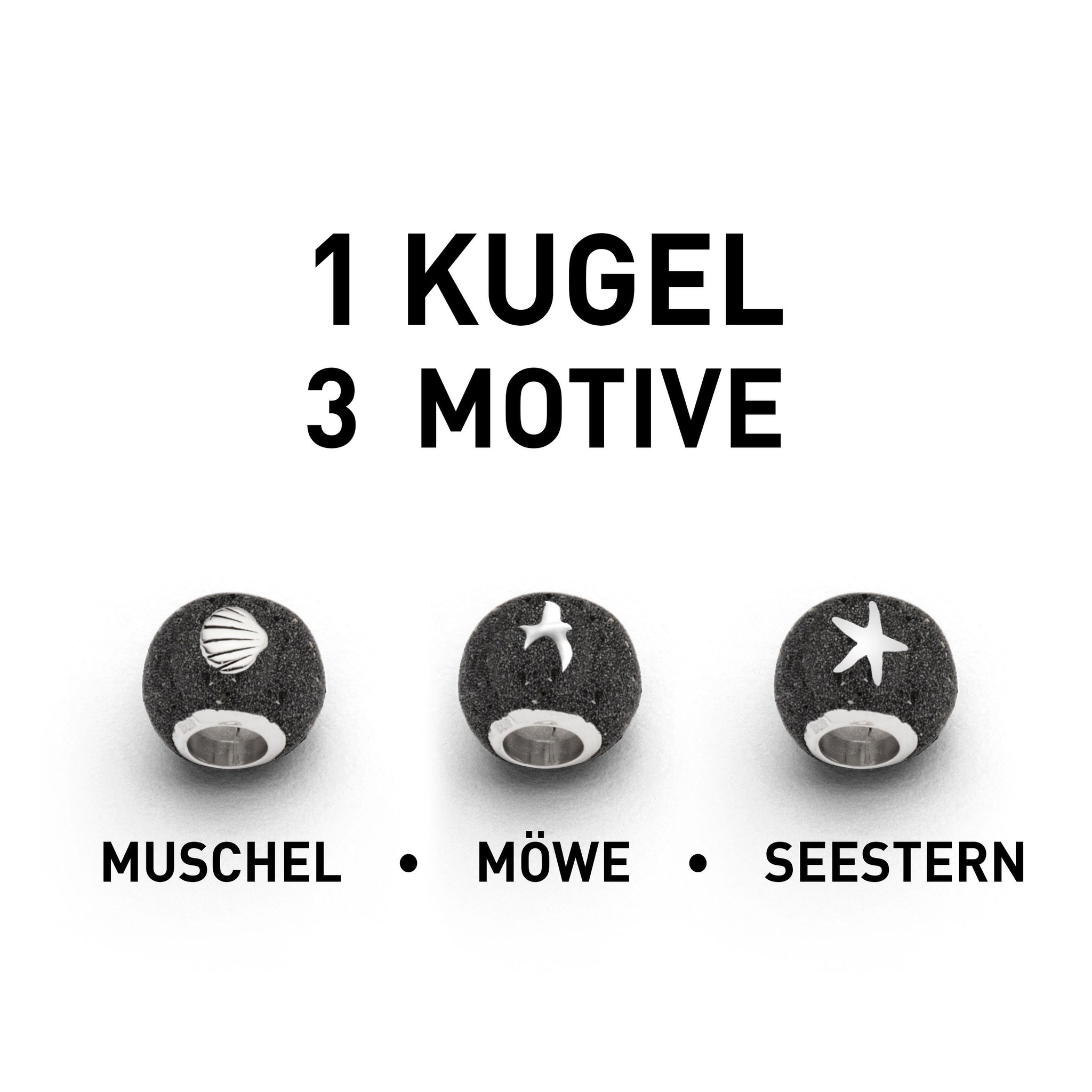 Diese Lavasandkugel verzaubert mit klarem, glänzenden Design und maritimen Motiven (Muschel, Seestern, Möwe), die das Gefühl von Urlaub vermitteln.